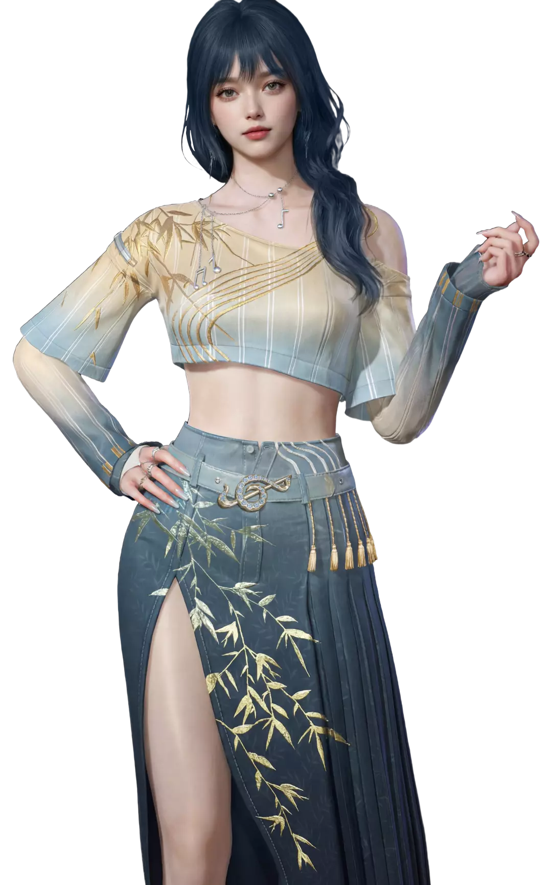 仙乐盈耳,清音满怀。音符与金竹完美交融,传统服饰的形制更衬托乐者的气质,诉说“声”与“形”的共生之美。