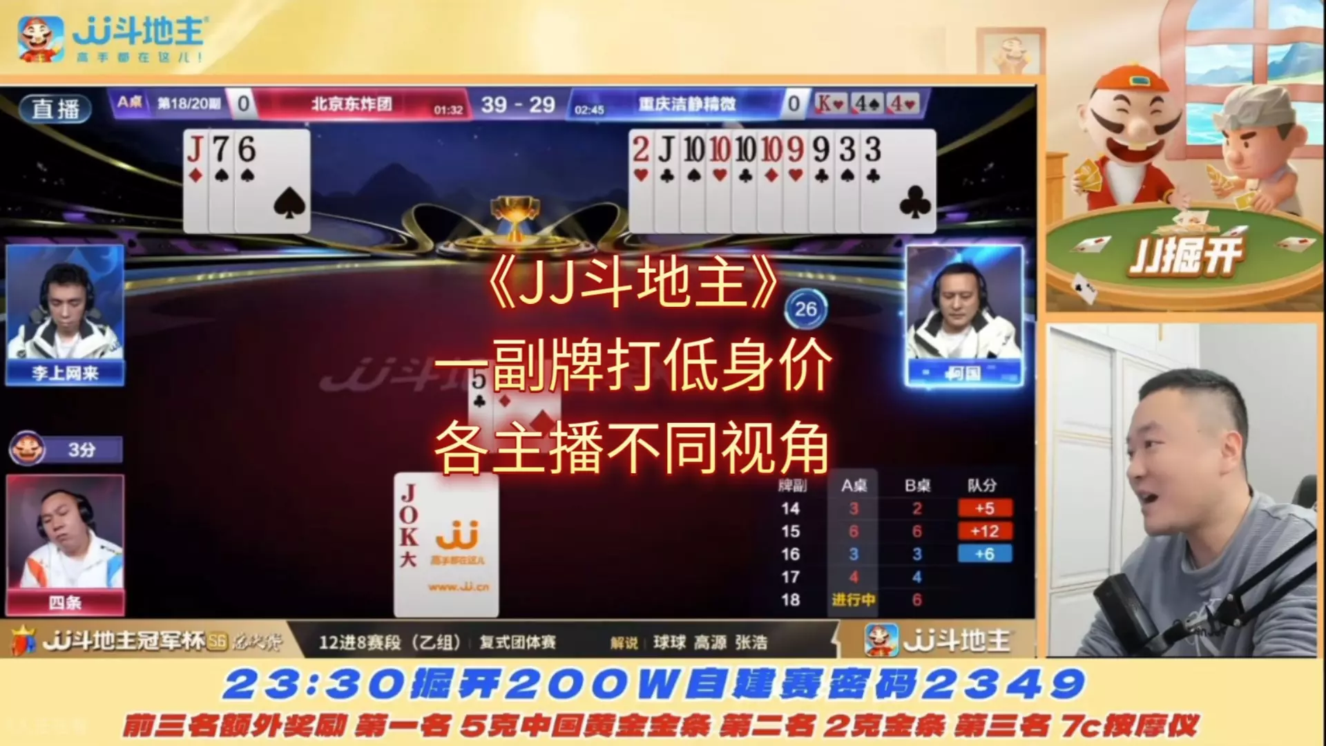 《JJ斗地主》一副牌打低身价,各主播不同视角