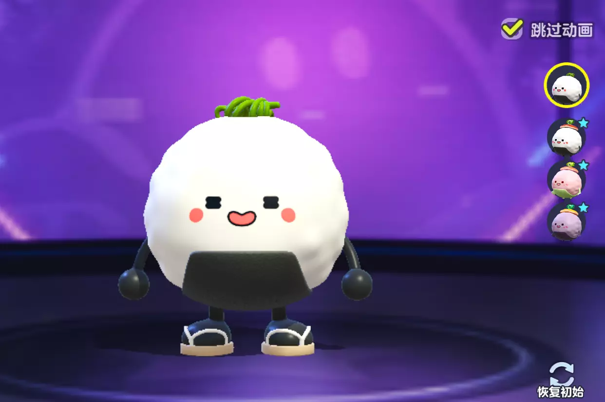 【饭团阿苔】首先第一款是我们的饭团阿苔~它的整体十分可爱,融化了众多玩家们的心!头上的小青草添增了些许的生动~它的染色分别是粉色和紫色,还有它的滚动特效是寿司,语音包也是萌的不得了啦!