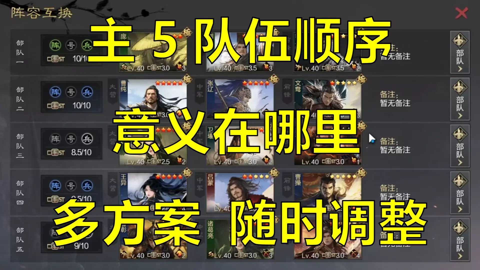 首发队推荐、全赛季强队合集、五队共存、开荒攻略、演武武将强度、武将价值、战法价值、装备词条、都在里面,持续更新