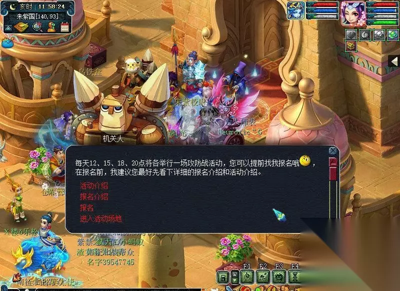 挑着重点:开启时间以及报名NPC。 3、时间到了之后,大家就可以去报名了。这边以12点为例。开启攻防战最少是6人,大家可以六开搞几个小号,或者拉好友帮忙。基本上现在除了刷成就,也没人会去玩这个了。我们12:00-12:10期间报名,12:10-12:15进场。超时或者不到时间,都是不能进去滴~