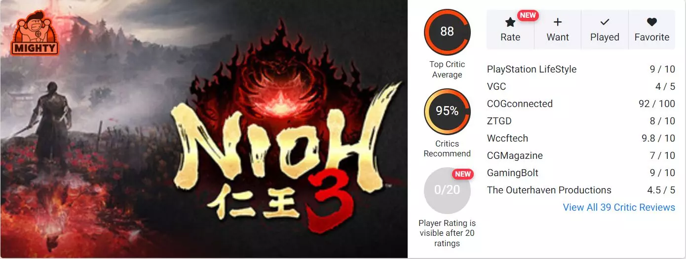 ——————————————————————————Opencritic(收录39家媒体评分,OpenCritic88分,推荐指数95%)
