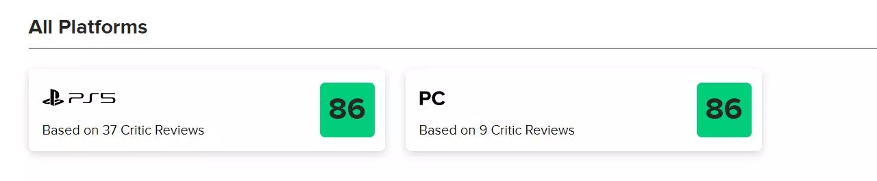 媒体评分:Metacritic(PS5端收录37家媒体评分,Metascore86分;PC端收录9家媒体评分,Metascore86分)