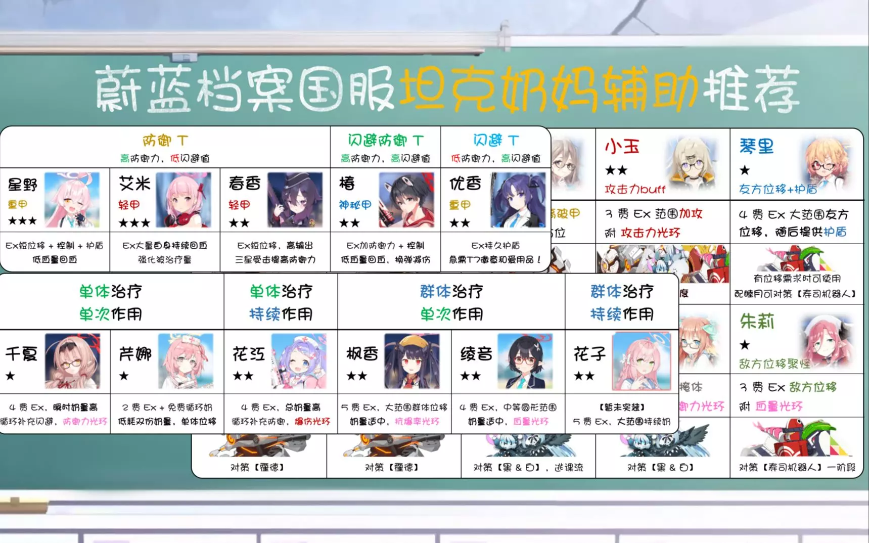 评分规则(除推图方面): ★:在此方面拥有过于强大的综合性能,其使用率和效用在该赛道无可比拟,缺失会严重影响游戏体验 S:几乎在此方面是铁饭碗,拥有优秀的性能以…
