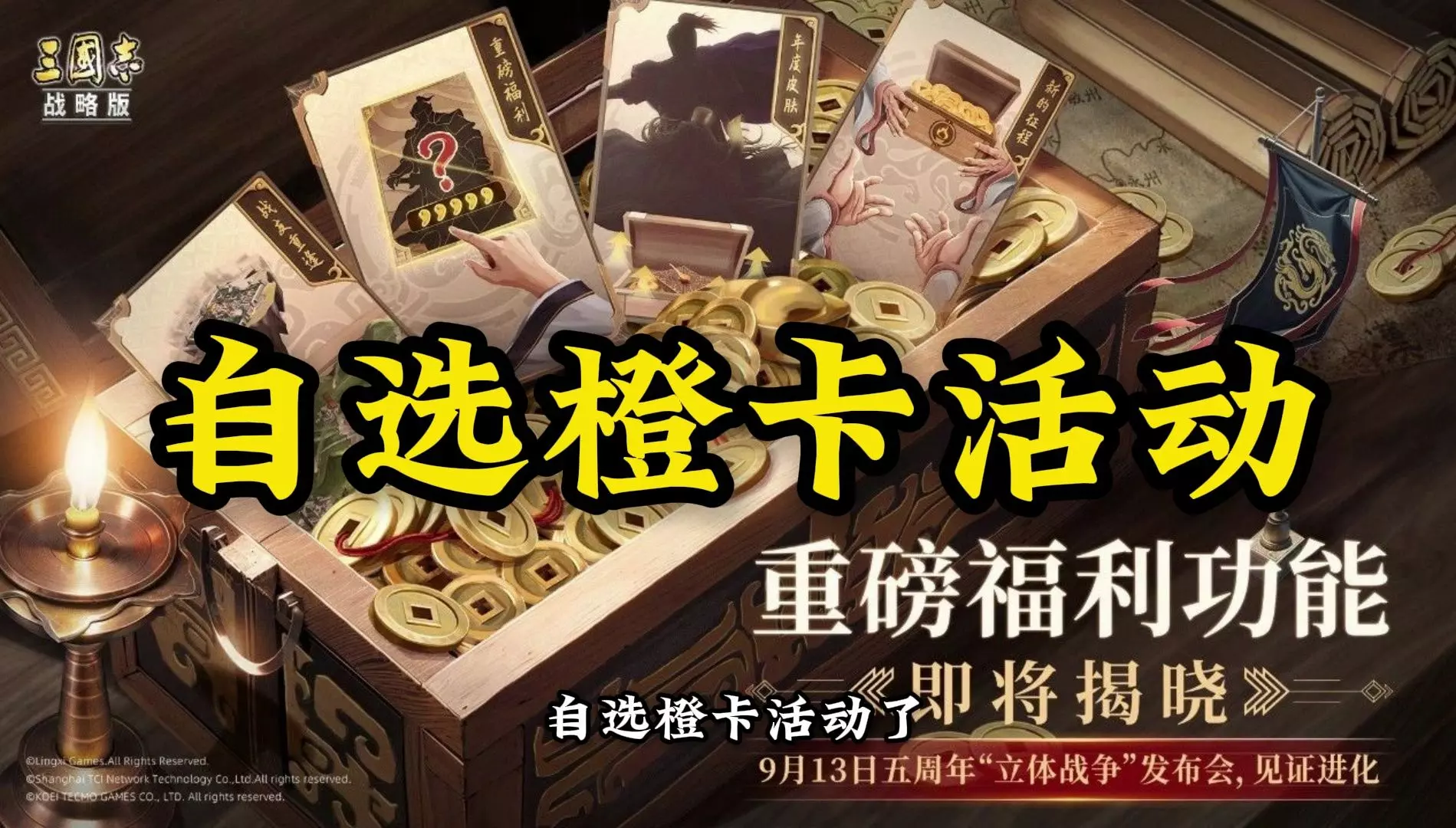 这是一篇关于三国志的游戏内容帖,为玩家带来三战五周年限定福利里的自选橙卡“心愿阁”指引,玩家可在该玩法中获取想要的橙卡,比如黑丝弓,活动诚意十足。