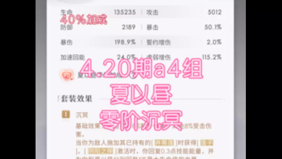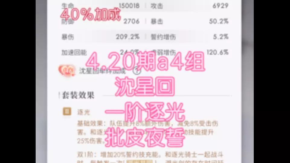 这是《恋与深空》4.20-5.04高级猎人锦标赛的相关内容,展示了沈星回全星队满星通关的A组赛事4战斗过程,还给出了A、B、C组的对应谱阵与搭配参考。