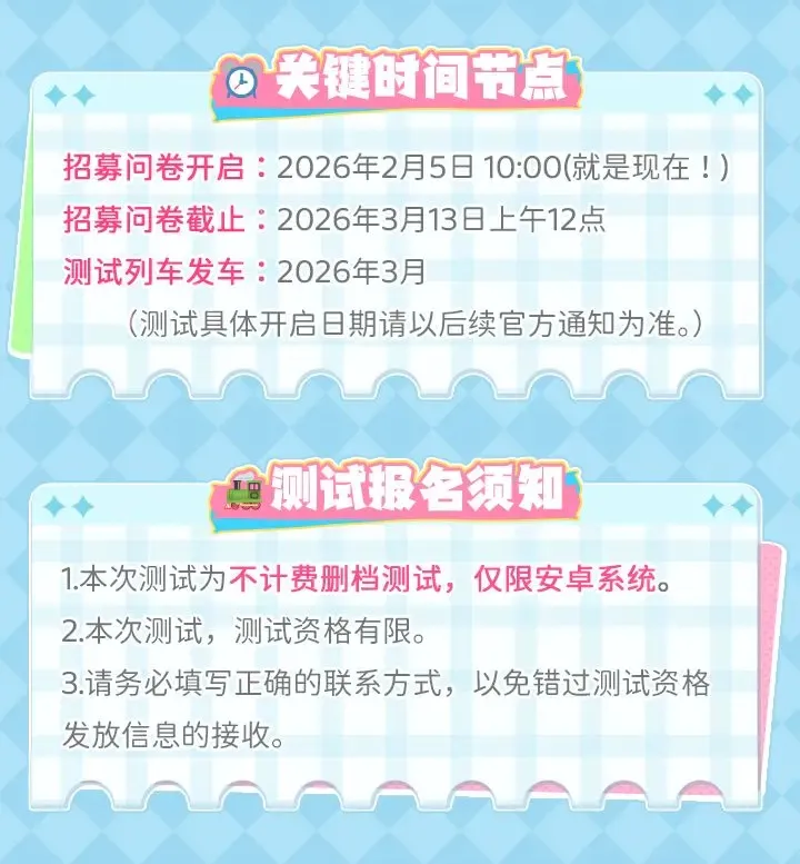 测试招募时间:2026年2月5日上午10:00 ~ 2026年3月13日上午12:00