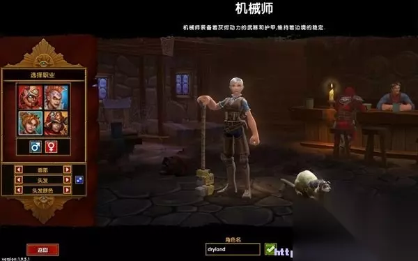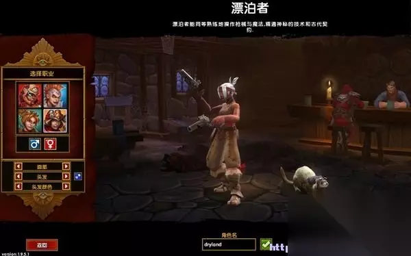 进入游戏选择角色职业:灰烬法师、狂战士、机械师和漂泊者。设置角色名字并挑选喜欢的宠物。