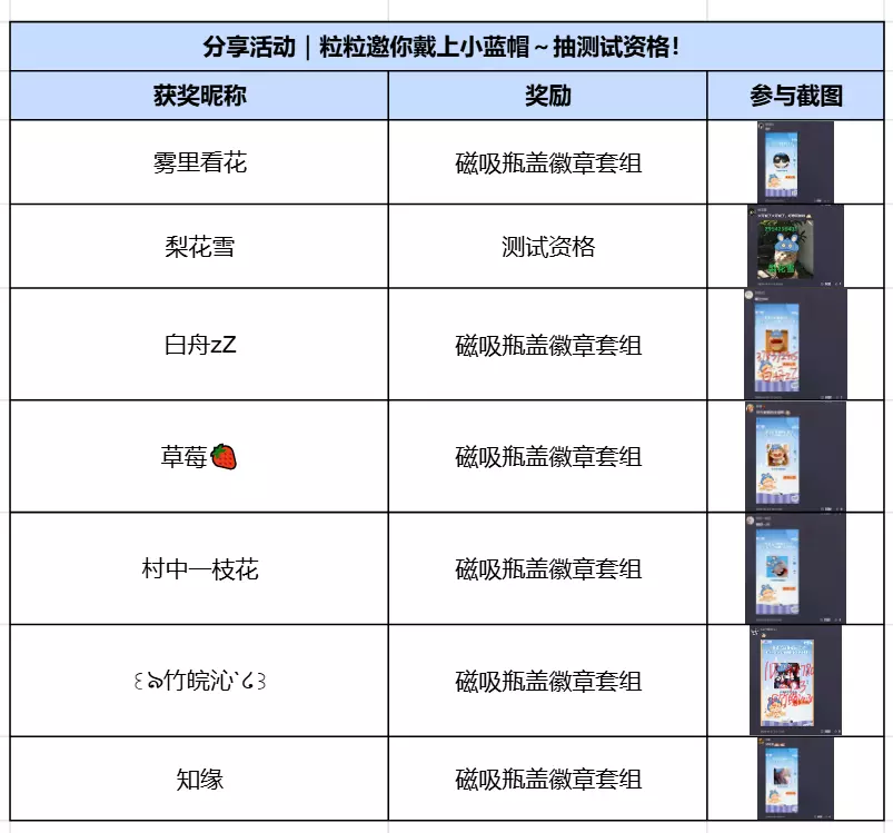感谢大家的积极参与!恭喜以下玩家获得奖励~