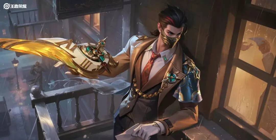 以钟表齿轮时代的古典美学为基底,融合奇幻侦探要素,我们为兰陵王设计了全新的形象,整体以棕色为主。