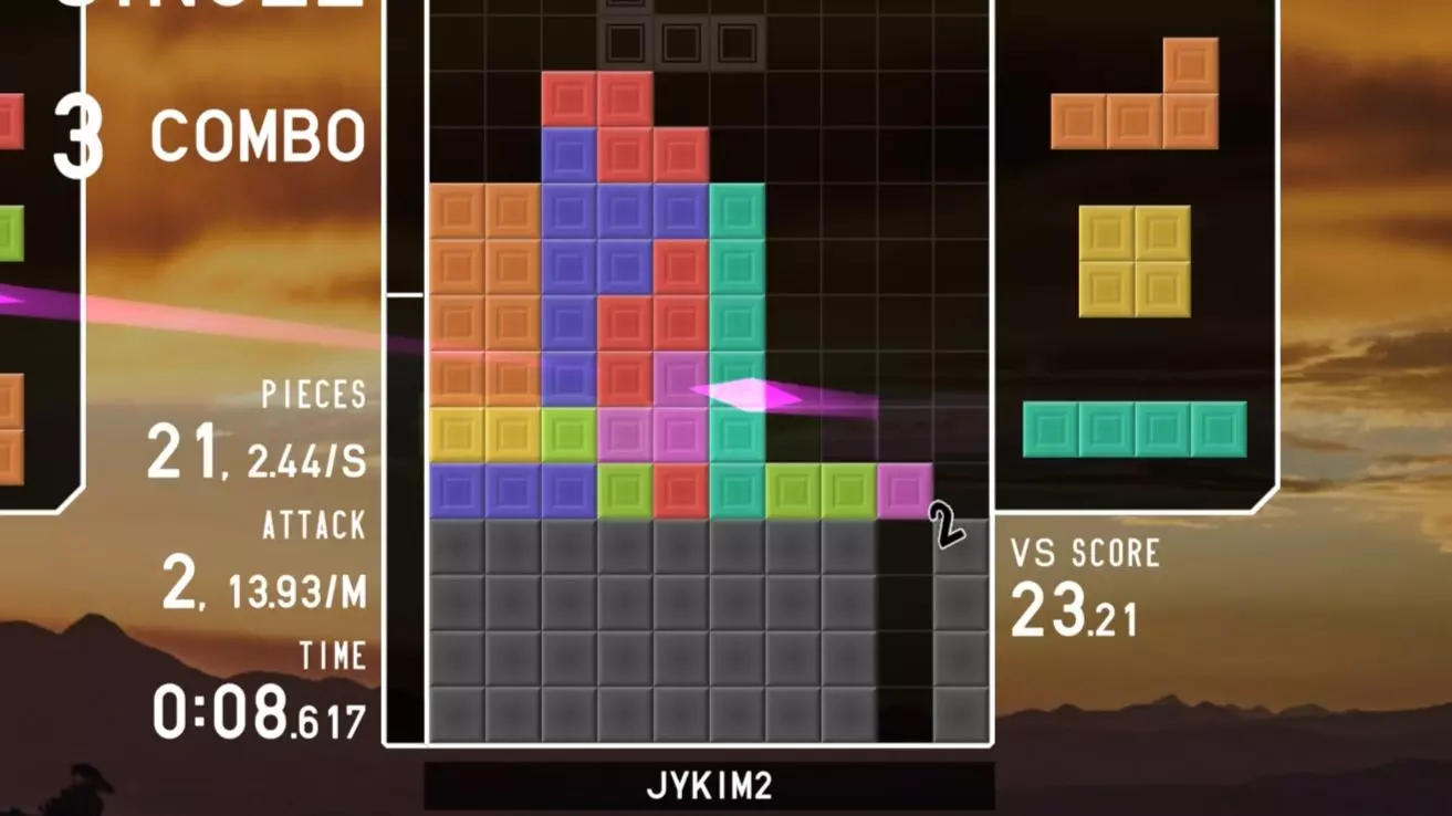 这是一篇《俄罗斯方块对战》的试玩实况,展示了和章鱼对战的游戏过程,画面呈现了游戏内的方块布局、分数、等级等数据,还展示了游戏的模式选择界面,提供了游戏链接。