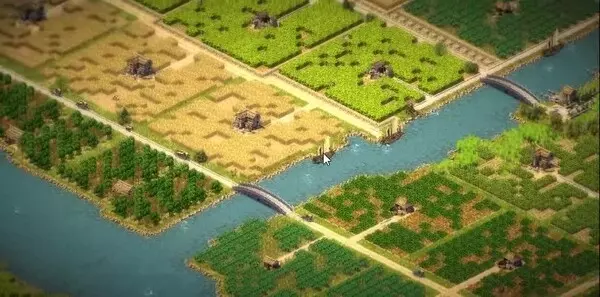 这是一款古风经营类游戏的桃源主题布局,以诗句“野桃含笑竹篱短,溪柳自摇沙水清”打造出临水而建的桃源村落,布局里分布着各类古风建筑、养殖与劳作区域,充满悠然的田园氛围。