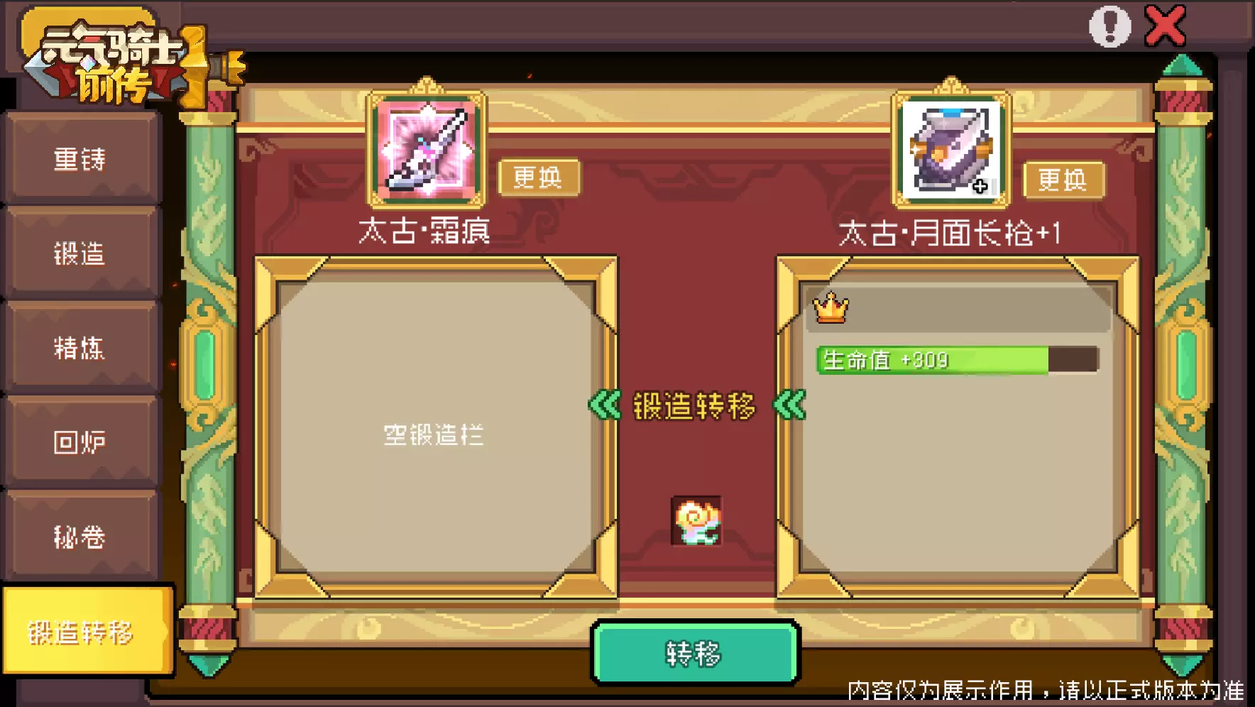 SS6赛季中,当角色等级达到60级时,小骑士可以将某一太古装备上的锻造结果转移到另一件同赛季同部位的太古装备上,转移后原装备的锻造相关属性将会消失。锻造转移需要消耗“灵韵”,可通过大航海玩法获得。