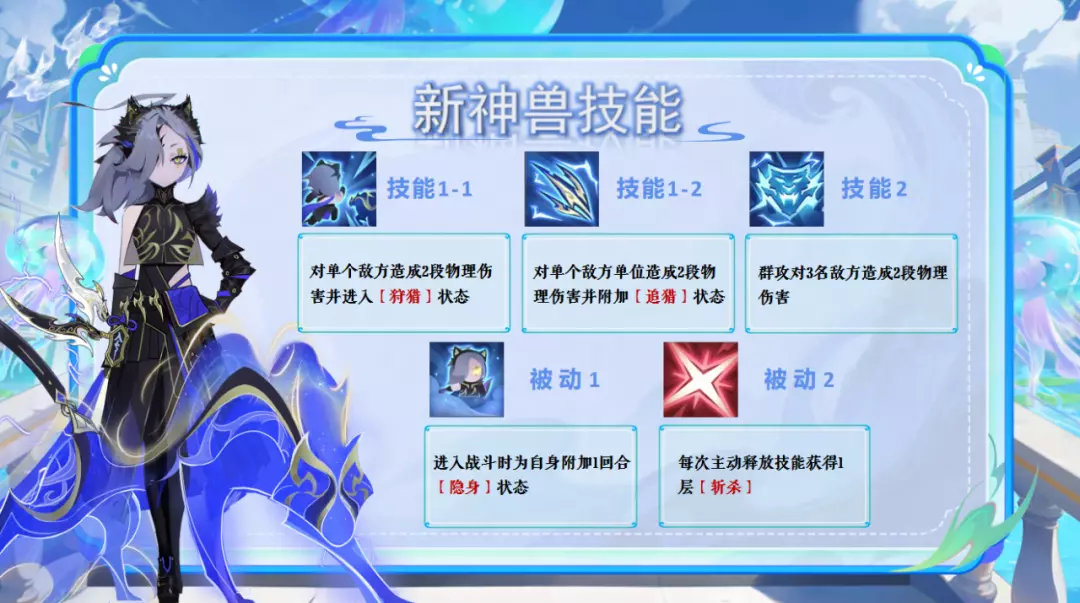 1、全新神兽「狰」登场,萌妹化身暗夜刺客,强力追猎机制,物理单体点杀