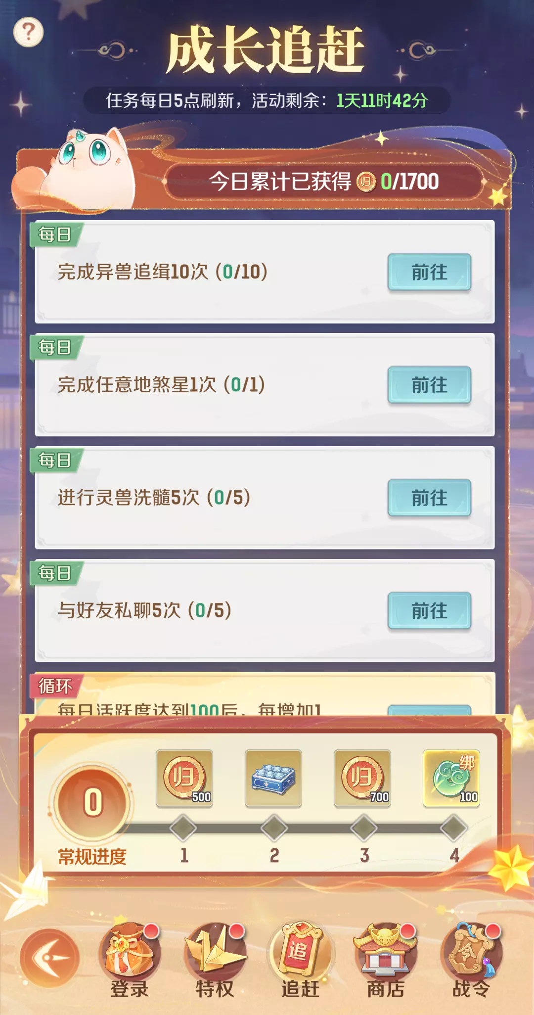 完成每日成长追赶任务