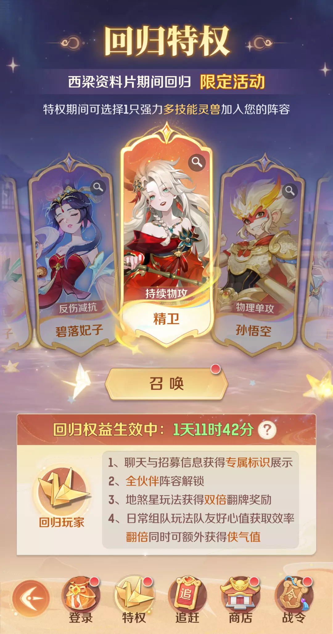 6、回归活动2月5日更新后上线,回归获海量福利,还有机会免费体验神兽