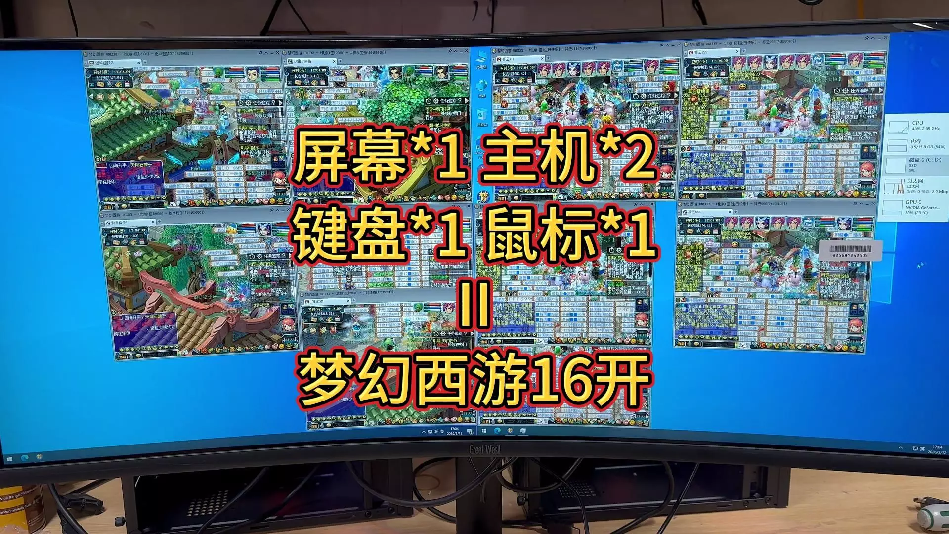 主机两个屏幕键盘鼠标各一个就可以做到梦幻西游16开啦