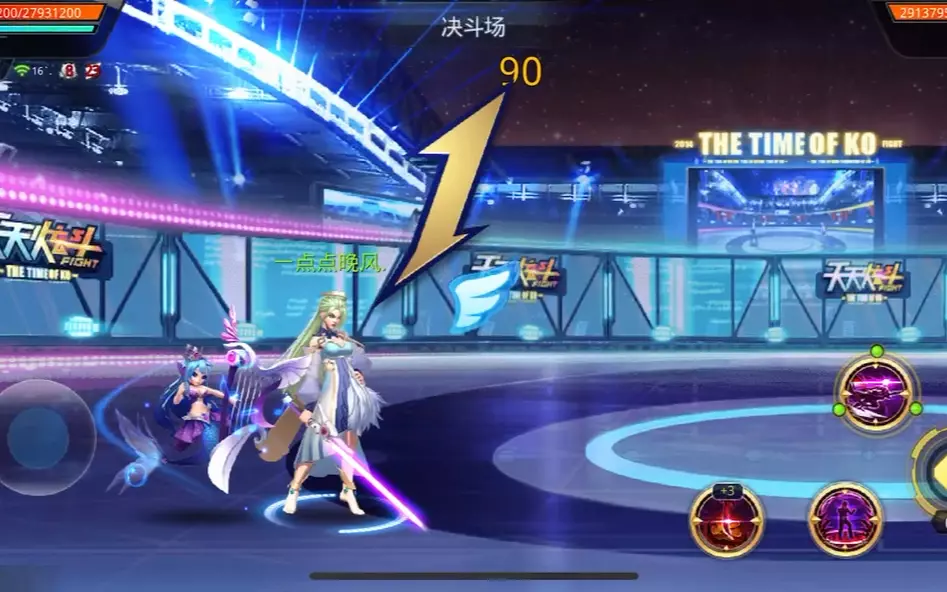 这是动作游戏《天天炫斗》的相关内容,展示了玩家在决斗场的对战画面,呈现了魔使角色的战斗表现,还出现了观众投喂互动的相关信息。
