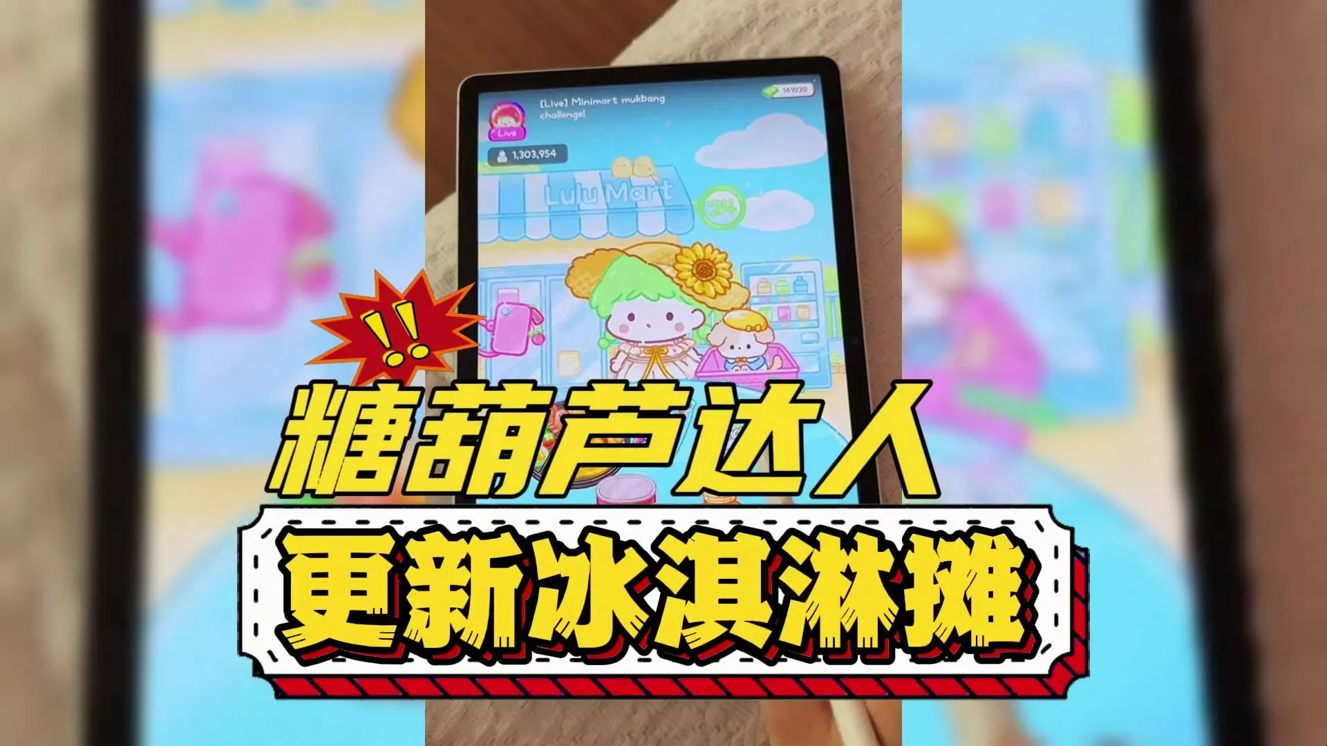 这是《糖葫芦达人》游戏的相关内容,展示了游戏中制作绿色糖葫芦的过程,还有可爱的卡通角色互动,完成糖葫芦制作后可开启吃播环节,还有观众留言互动。