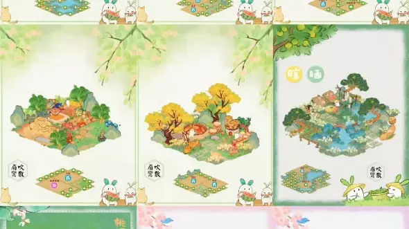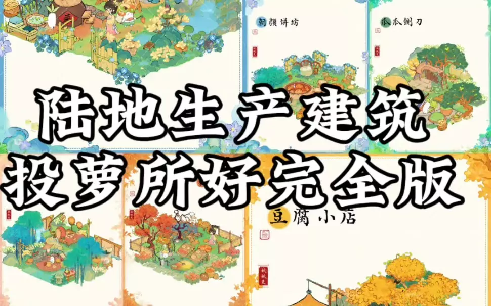 这是种田手游《投萝所好》第二期内容,展示了豆腐加工区、土料区、农田等不同功能区域的布局设计,还有更多风格各异的场景布局,为玩家提供了丰富的游戏场景参考。