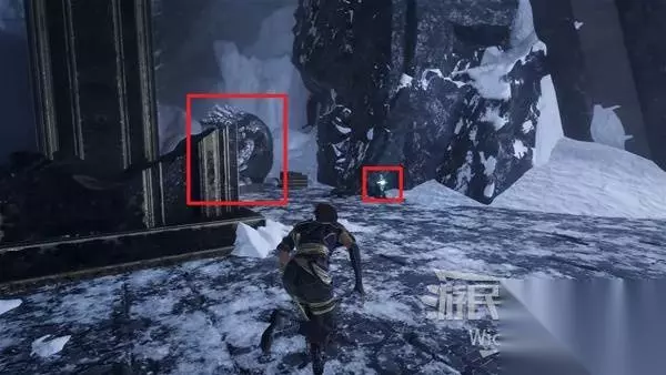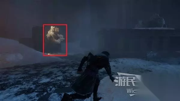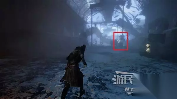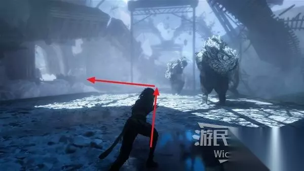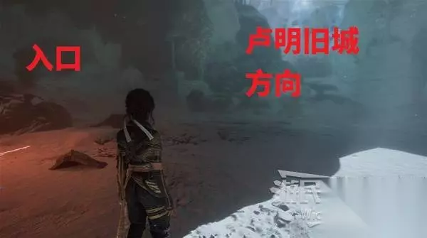 回到建筑外区域,面对来时的入口,左侧土坡是从失落的战场来的入口,右侧有楼梯的出口通往卢明旧城方向大地图。
