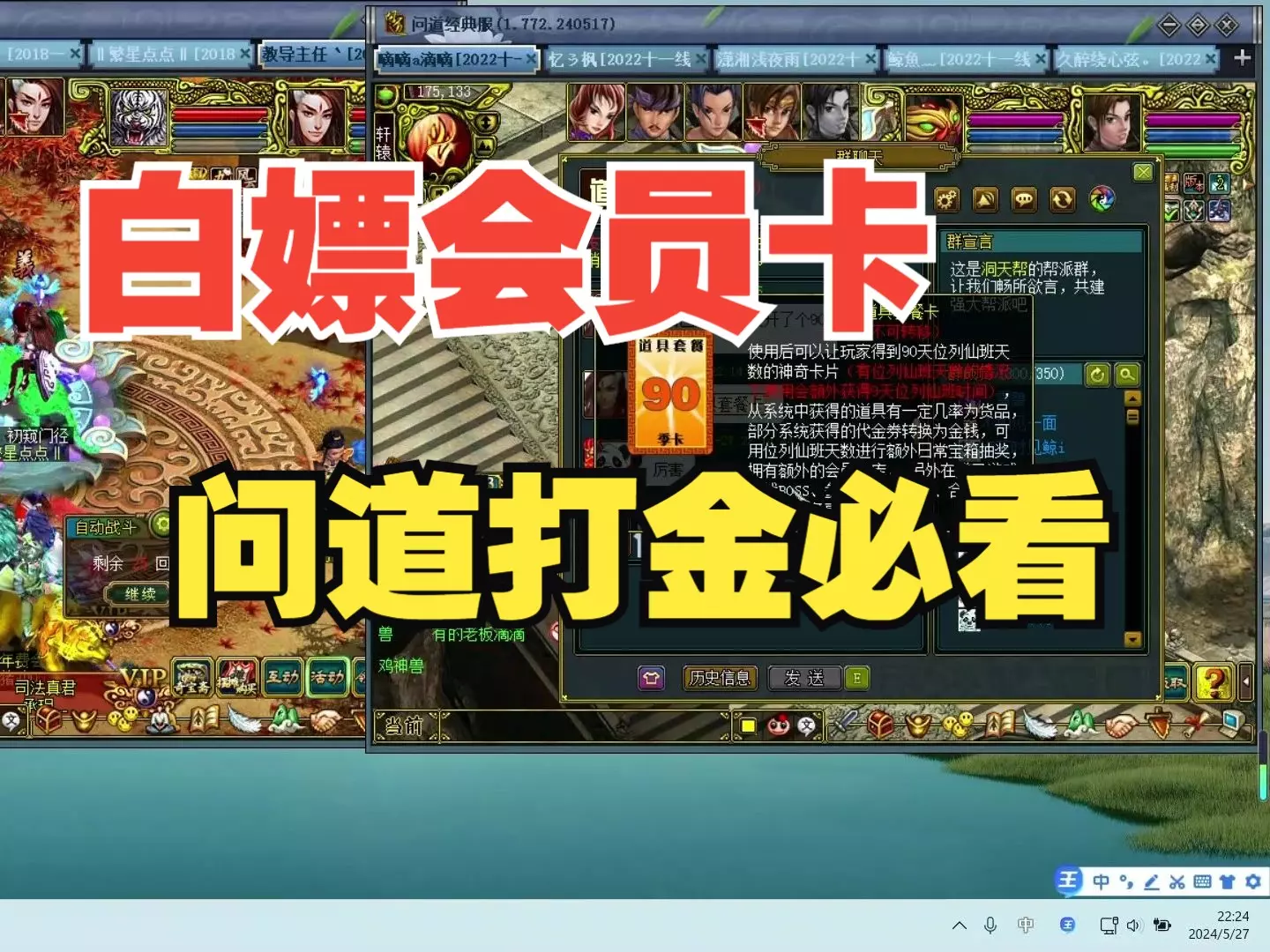 问道经典区双线区搬砖(十七)打金必看,白嫖会员卡的途径!