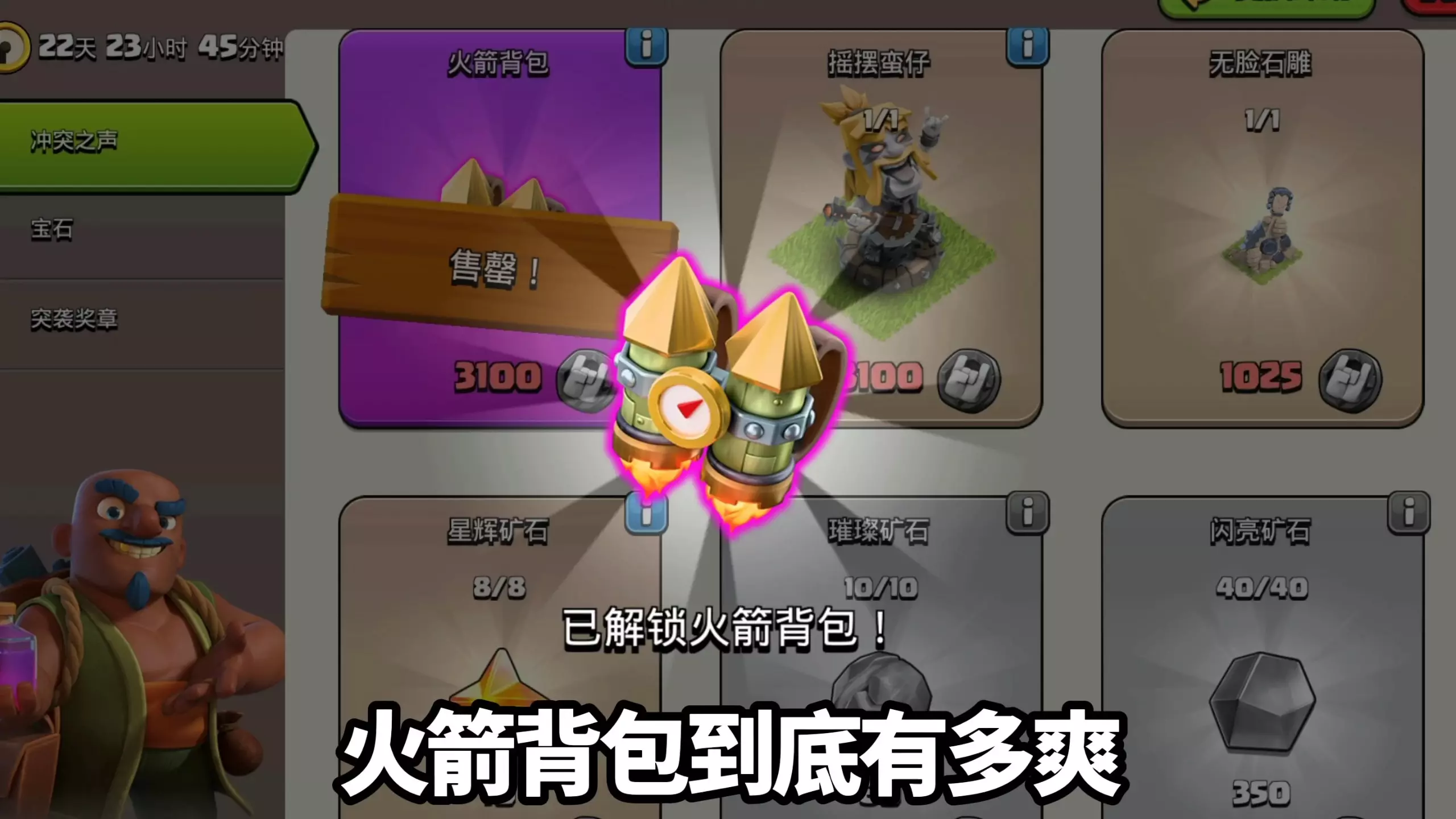 原作者:Judo Sloth Gaming 发布日期:2026-04-07 视频链接:https://www.youtube.com/watch?v=7C8FURtq0zM ✨ 想看英文原声? 00:00 活动与获取方式概览 介绍“Sound of Clash Metal”活动的基本信息,包括时间、主办者、活动建筑“Mekball”、通过摧毁特定建筑收集“spiky bracelets”以及逐步获得“metal medals”的机制。 01:34 活动进度与奖励(上) 详细介绍活动的主要奖励轨道,包括解锁派对巫师、免费装饰品“Mek Ball”、所需的尖刺手环数量以及免费玩家可获得的金属勋章总数。 02:24 活动进度与奖励(下) 介绍获得更多勋章的额外途径,包括购买活动通行证、使用创作者代码获取额外手环、以及通过Supercell商店获取免费勋章的可能性。其中包含对创作者代码“Judo”和Supercell商店的推广内容。 03:52 兑换商店提醒 04:04 兑换商店物品推荐 详细介绍兑换商店中可供兑换的物品,并对新旧装备、资源、装饰品等提出购买优先级建议,帮助玩家做出决策。 05:14 部落小屋装饰 作者评价本月的部落小屋装饰与其摇滚主题的配色方案,并对活动装备的满级试用期进行补充说明。 05:31 火箭背包属性分析 详细介绍火箭背包的具体属性,包括满级试用期、技能效果、升级带来的伤害和英雄属性加成变化,以及在不同等级下的性价比分析。 06:38 装备搭配分析 对比火箭背包与其他龙公爵装备(如石爆破器、火焰喷射器)的属性,分析它们之间的搭配兼容性问题,并建议最佳组合。 07:15 最佳组合推荐 继续分析装备搭配,指出火之心(Fireheart)是火箭背包的最佳搭档,并解释原因。 07:37 使用策略讲解 详细介绍火箭背包在实战中的最佳使用策略,核心是与弓箭女王的巨型箭矢技能协同,创造贯穿基地中部的进攻路径,并与空中部队配合。 08:42 总结与结束语 总结装备潜力,邀请观众分享使用计划,并播放推荐的频道视频作为结束。 使用YouDub AI翻译配音制作 项目地址:https://github.com/liuzhao1225/YouDub-webui