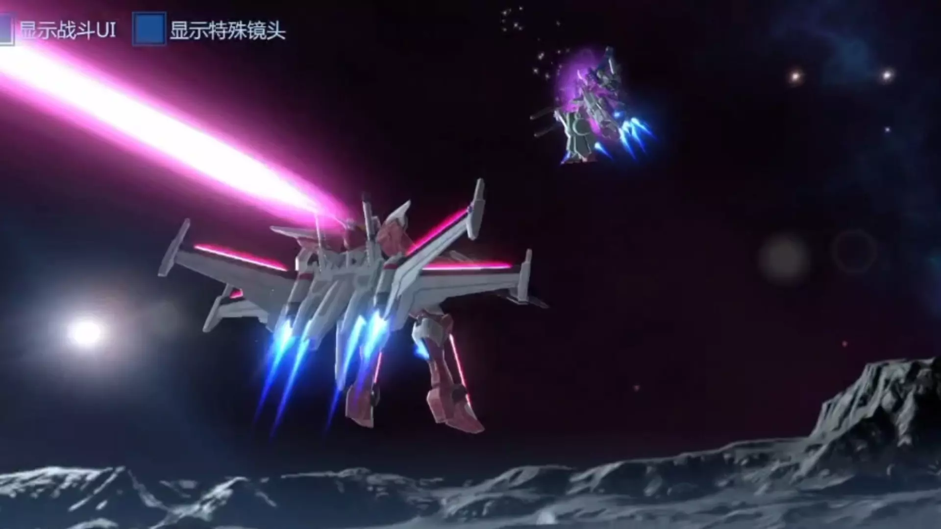 这是高达类手游的对战画面,展示了倒A高达在对局中与敌方机体的战斗过程,倒A高达作为对策种系近战机体,在对战中释放技能攻击敌方,呈现了该机体的实战表现。