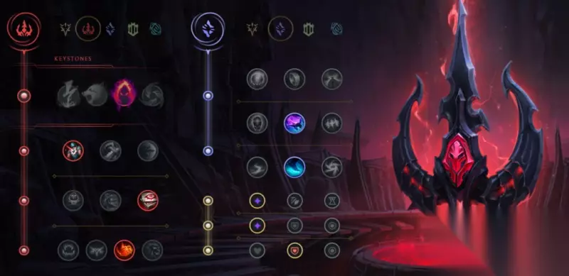 AD刺客的符文没产生较大转变。主宰是打野刺客的主系符文,副系则很灵活。你能够选择致命一击和凯旋,也能用巫术系获取攻击力加成。装备: