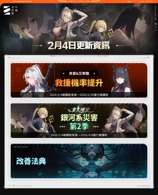 • 开放期间:2026/2/4维护作业结束后
