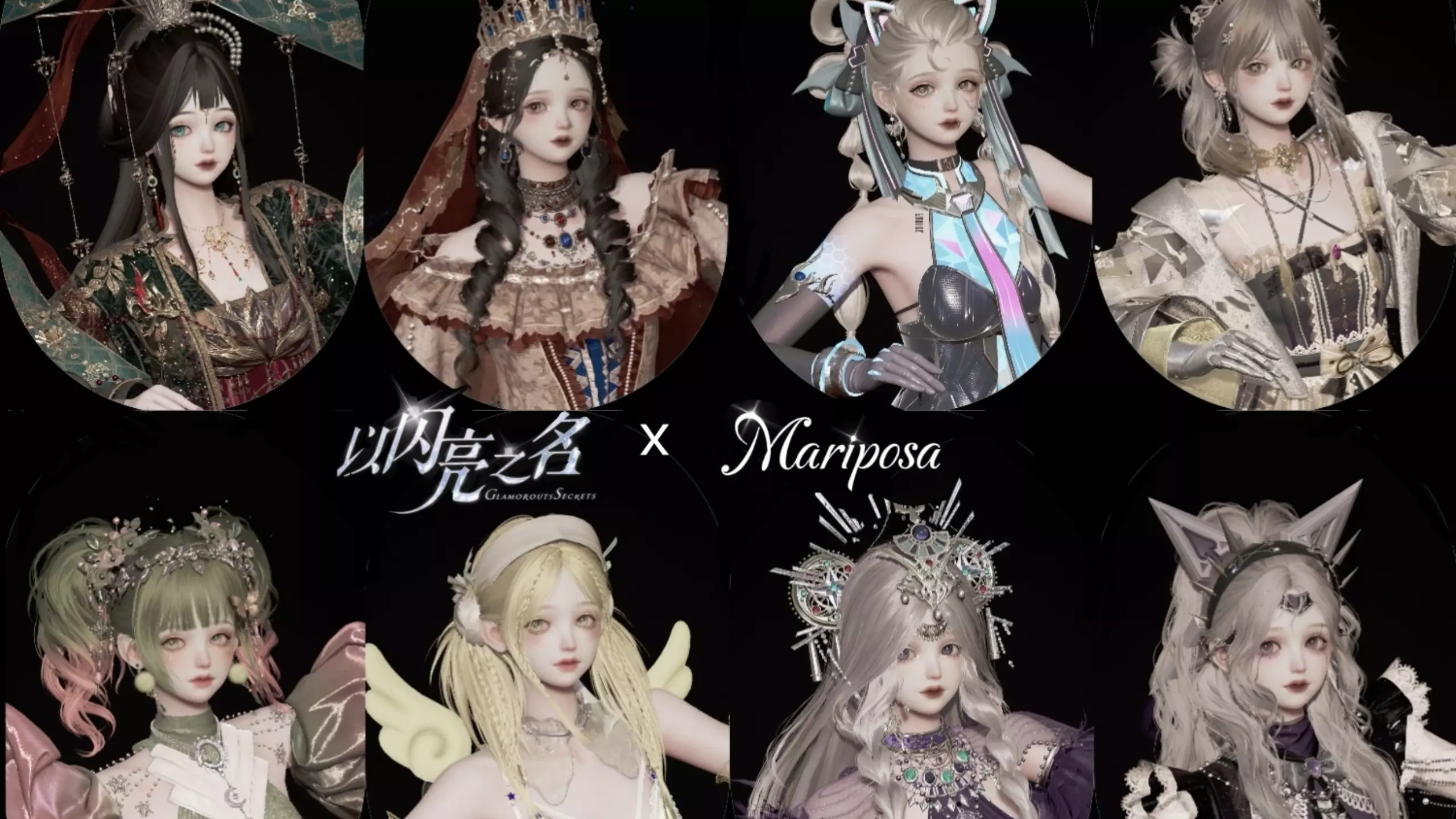 这是《以闪亮之名》的穿搭分享,玩家通过饰品定制搭配,组合出一款华丽精致的超豪华黑红风格蝴蝶王冠,搭配同风格礼裙后整体造型贵气美观,展示了搭配过程与成品效果。