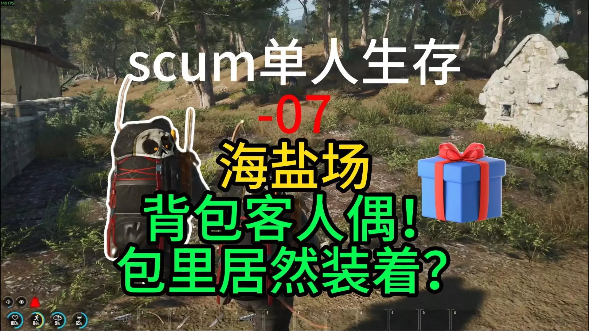 这是一期SCUM单人生存游戏内容,玩家探索B4沿海小镇,此前在这里获得过ump45,本次探索再次遇到背包客,展示了小镇探索过程与物品收集情况。
