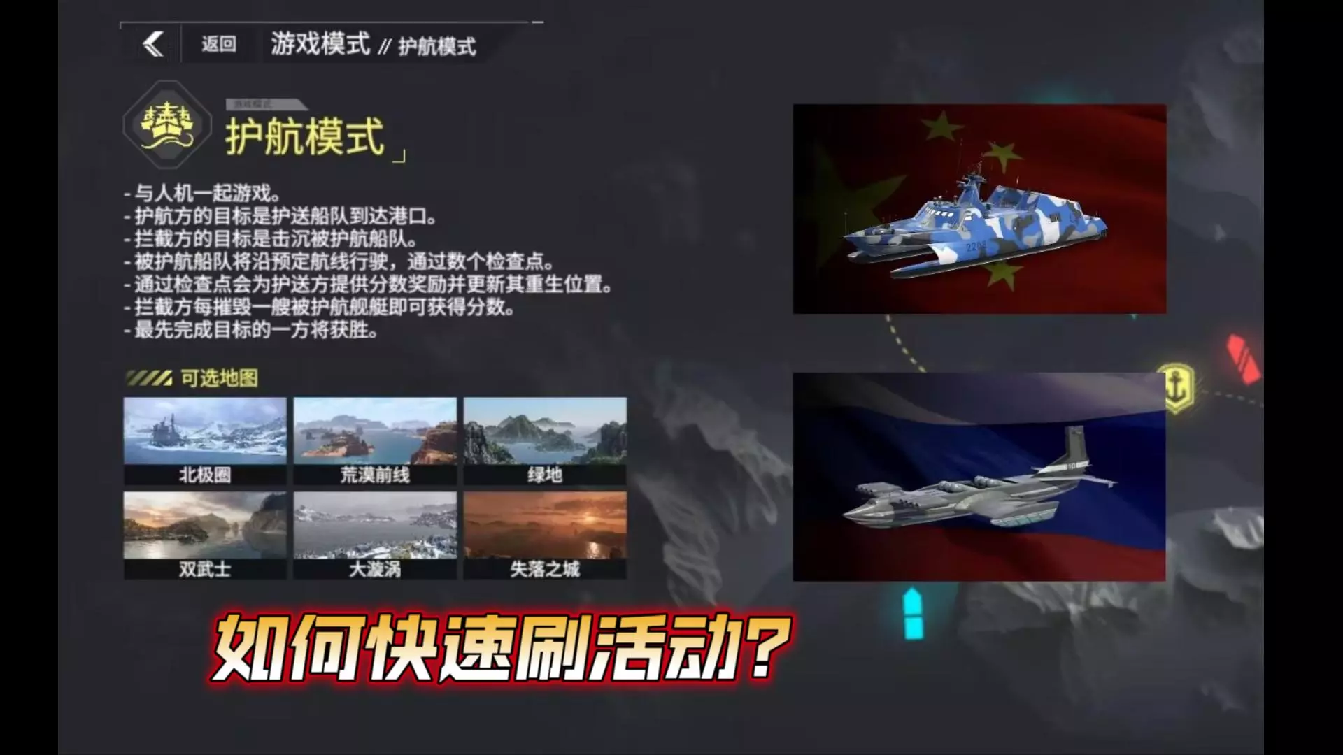 这是《现代战舰》的游戏内容,展示了玩家使用094型核潜艇,在护航模式拦截方玩法里,借助给力队友完成一命速通的战斗过程,还分享了战斗中的操作技巧与想法。