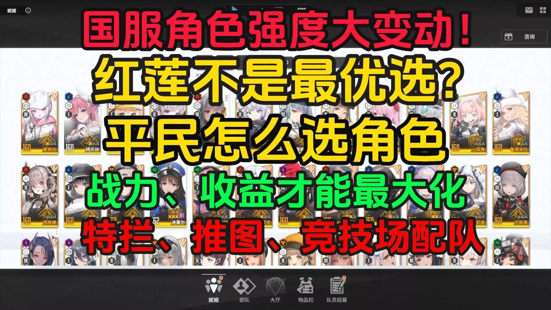 最新国服角色强度大变动!特拦、推图、竞技场配队推荐!