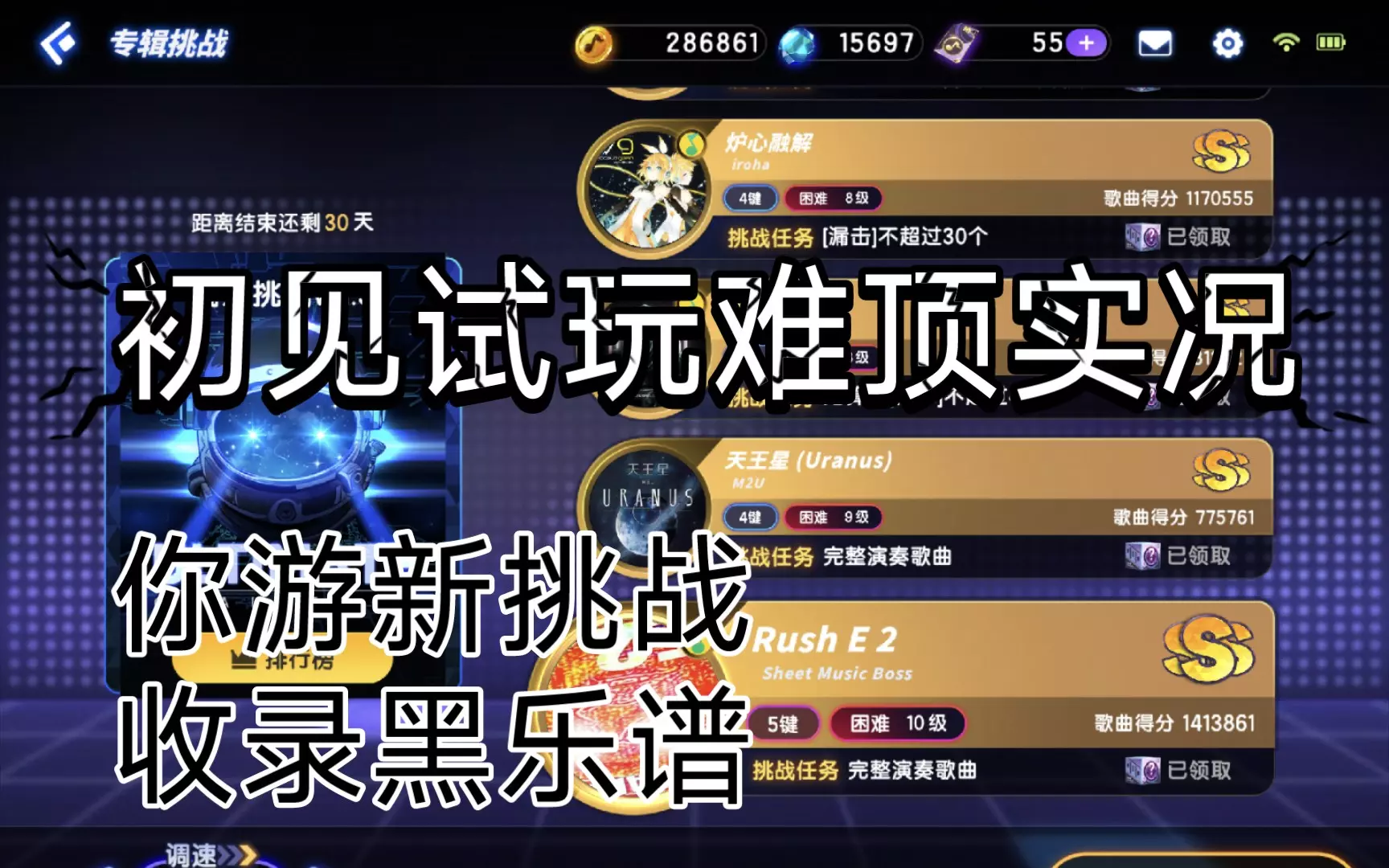不少水友私信催更的《节奏大师》最新高难专辑挑战的初见试玩实况来了! 个人感觉是目前为止整体难度最大的一张专辑,甚至比最早的“终极挑战”都要难上不少。尤其是第三关…