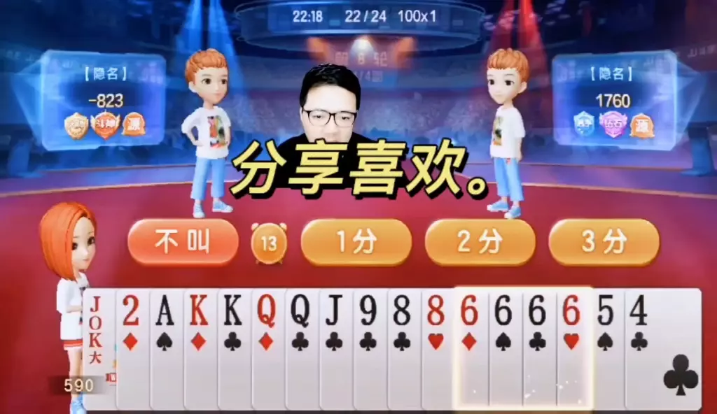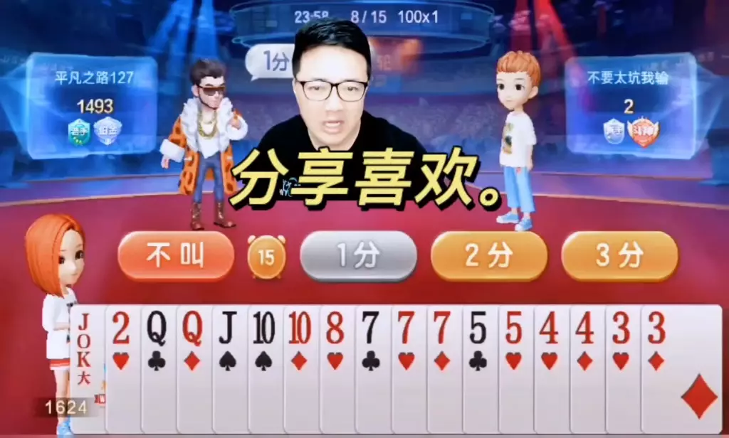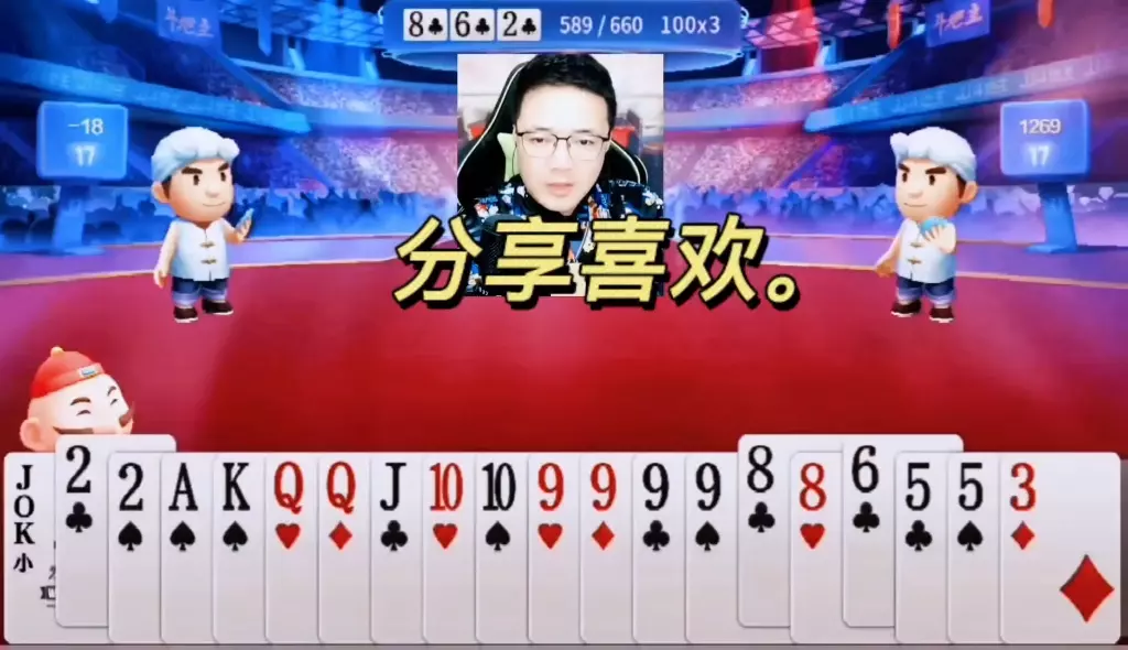 三岁玩牌破釜沉舟四个3的大胆一炸后期残局细腻的行牌为自己争取到了胜利!