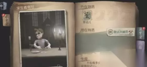 2、求生者 逃生者分为很多个角色,每个角色的技能都不相同。而且每个角色有优点的同时也会有缺点。