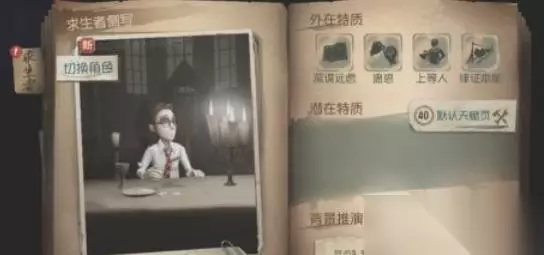 4、人格 人格分为两种一种是外在人格,一种是内在人格。外在人格就是我们作为逃生者的人格。我们可以通过点出人格来增加游戏里面的一些属性。内在人格是我们作为监管者的人格,我们点人格增加监管者在游戏中的一些属性。