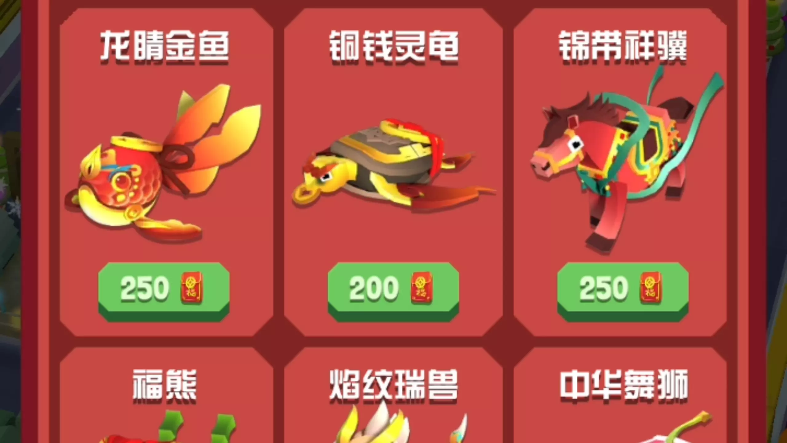 本次是兑换春节活动里的全新五种动物视频,其他动物都是之前活动的。 对了,还有一个全新的帽子叫:送福灵童。