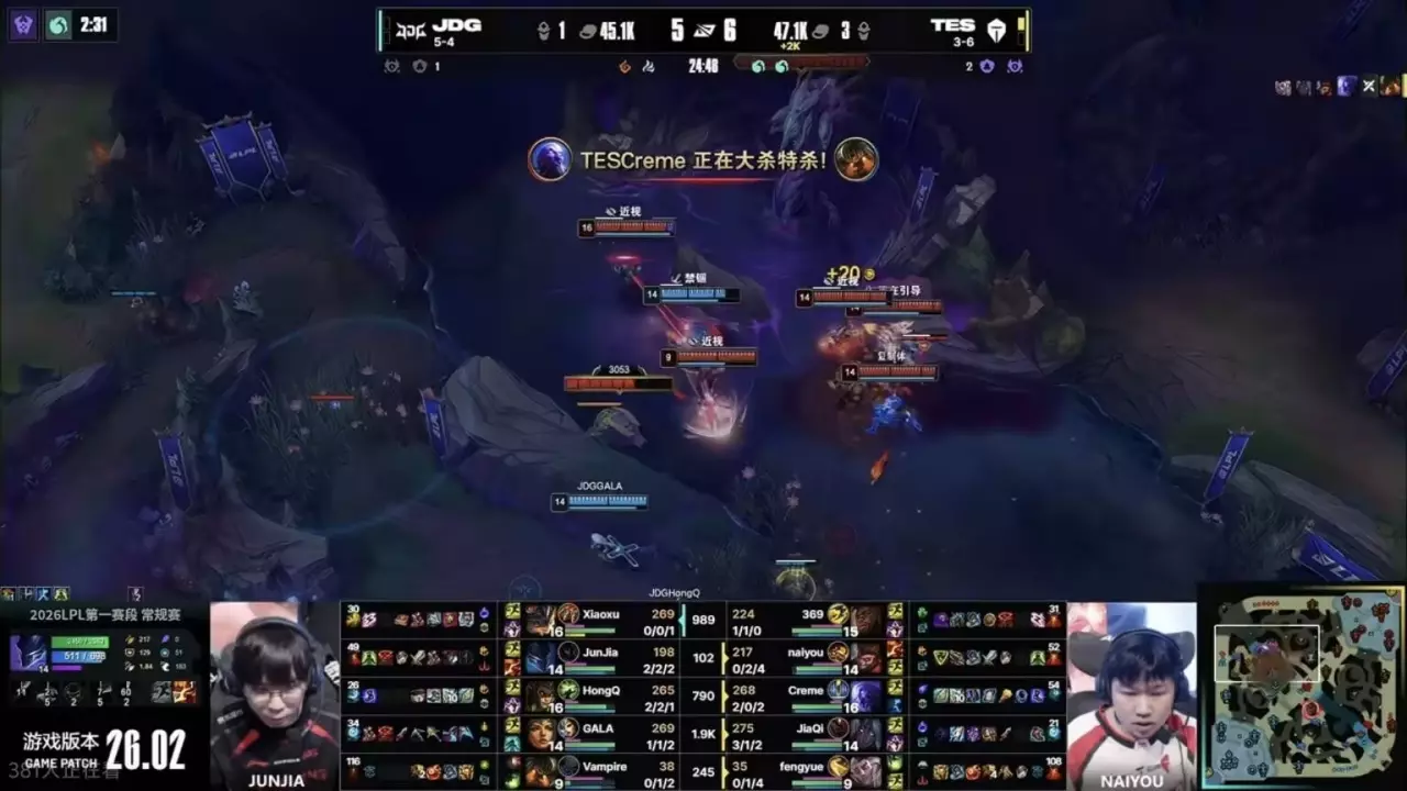 JunJia的梦魇,玩得也很一般,前期带起节奏之后,团战各种乱飞,每次飞进去就死,还专门给滔搏双C送头,生怕对面发育不起来,24分钟的大龙团,京东野辅是最抽象的,泰坦想开团,结果勾到了墙,这时候就应该卖辅助,等上单落位后,再考虑能不能打团,结果JunJia飞进去了。