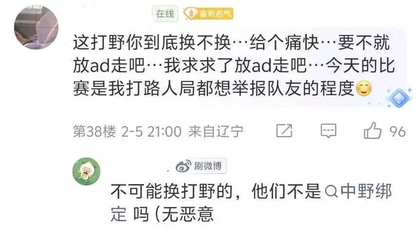 JunJia的抽象操作,也不只是这一场了,京东战绩打到5-5,跟他脱不开干系,JDG的粉丝,现在都在官博下面留言,要求更换打野,网传消息说,JDG跟小天联系过,但到底会不会换人,现在还不知道,JunJia是跟HongQ绑定的,如果打野换人的话,中单会不会接受,也还是个未知数。