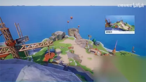 在激活“班吉斯码头”风景点的地方,继续往西北方走,爬到如下图山丘的木台上就能看到“班吉斯重工”风景点。