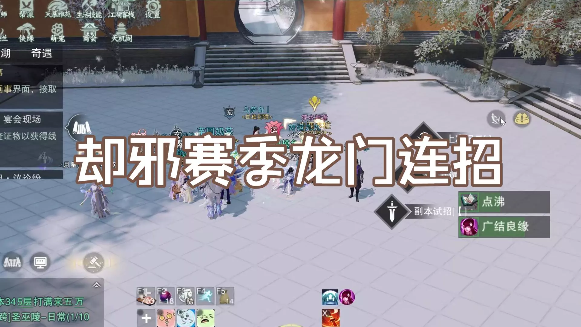 #一梦江湖手游#宗派新升级,武学你定义!复制本条数据,在宗派编辑页面使用复制的宗派方案<<f4add59dfeb937900195849b852fb40f>> 文字版连招: 第一套:遍扫喧浊 飞光 野市回身 遍扫 游丝(秒接二段) 劝客一段 平陆 翻滚 聚散由人 大招 遍扫 翻滚(续中金buff) 劝客二段 野市回身 乱挽游丝(打四格闲情以上) 遍扫喧浊 飞光 平陆 翻滚 聚散由人 遍扫 平a两次(减遍扫cd) 解控(减游丝cd) 等cd 第二套:遍扫喧浊 飞光 野市回身 遍扫 游丝(打满闲情) 劝客一段 平陆 翻滚 大招 聚散由人 遍扫 翻滚(续中金buff) 劝客二段 遍扫 飞光 游丝(打满闲情) 平陆 翻滚 聚散由人 解控(减游丝cd)