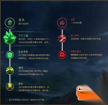 乌鸦是一个法坦,我们就追求血量和吸血,因此点出坚决系里的不灭之握来增加吸血和血量,生命源泉配合W再一步加强吸血,调节增加双抗,复苏增加吸血,副系血之滋味和贪婪猎手都是增加吸血,打团战开着R的乌鸦会非常肉。