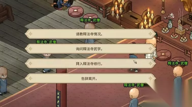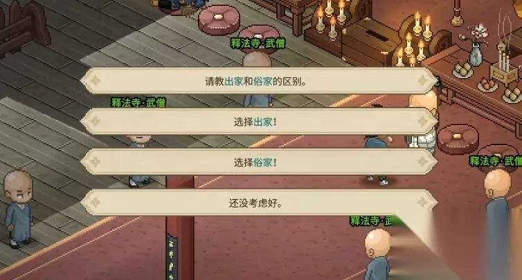2、选择出家,加入释法寺。(俗家弟子所有经书全部读完,佛法大于五百也无法解锁这个结局)