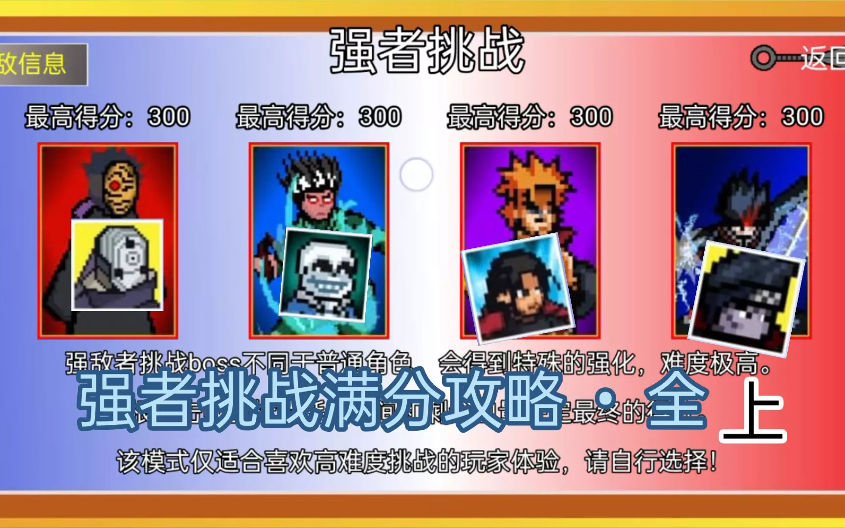 像素火影次世代强者挑战全300分合集,目前最快。
