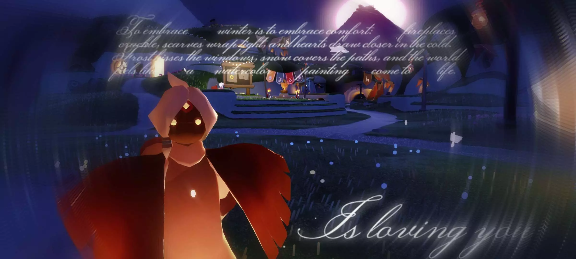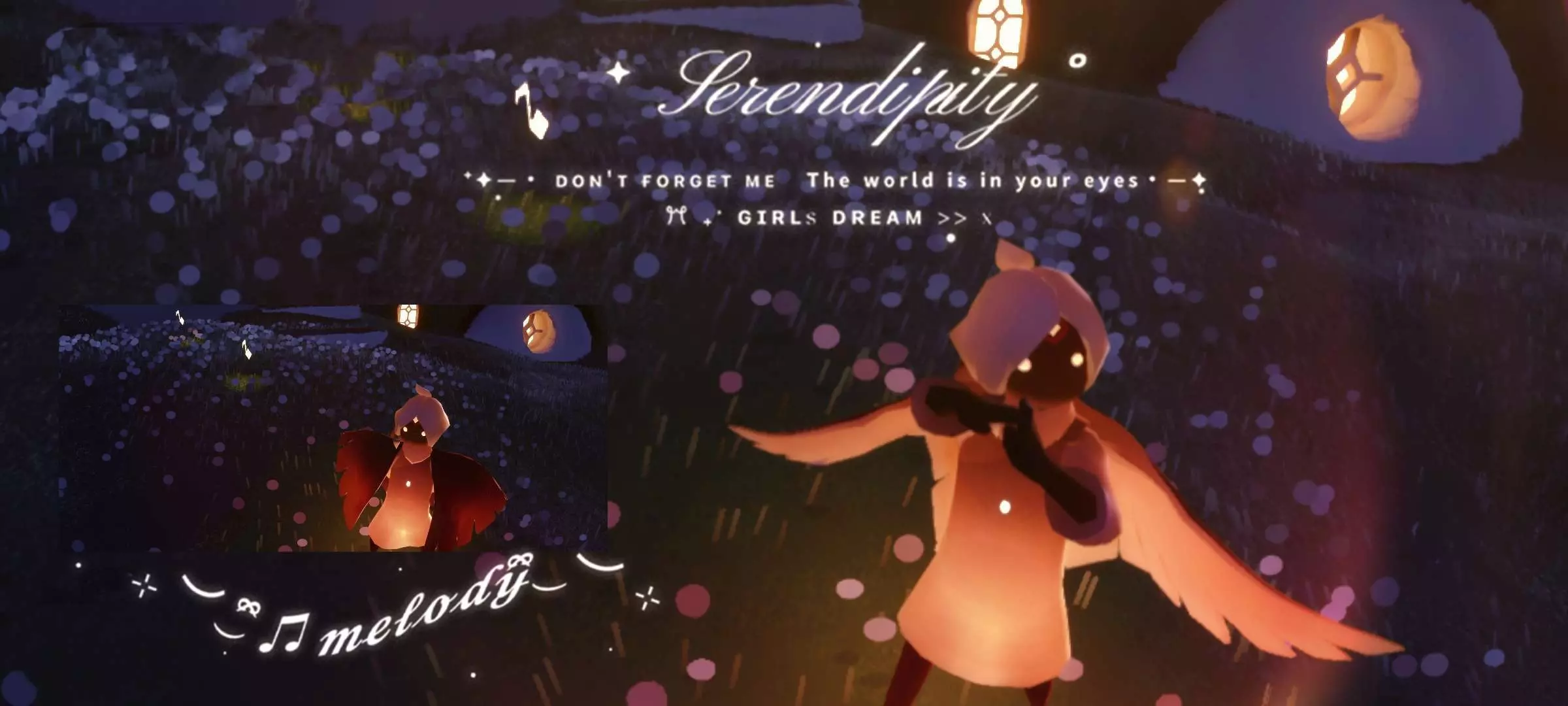这是一篇光遇创作团的美图帖,分享了多张国风游戏《光遇》的精美截图,画面里的光遇角色在浪漫的夜色场景中,搭配文艺文字,氛围感拉满,展现了光遇的独特游戏美学。