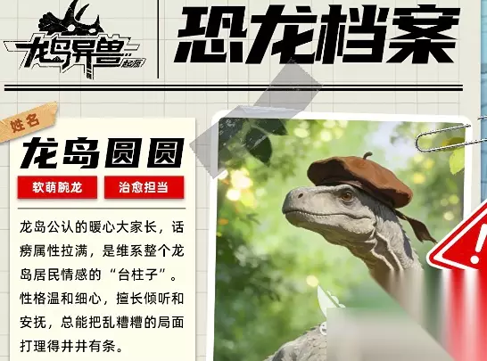 谁能想到一只恐龙还可以拥有毒属性的附加伤害?而他就是双冠龙,这只恐龙在头顶上有一个彩色的顶冠状结构,而这一结构就是它的有力武器,可以释放出强烈的有毒雾气,在对敌人造成高伤害的同时,还会使周遭的其他恐龙的移动速度快速降低,这只恐龙尤为擅长于在狭窄地形当中进行进攻,可迷惑敌人,快速攻击其致命部位。 第二只强推的恐龙是龙岛圆圆,作为一只腕龙是团队当中的智力担当,也是每一个龙岛小伙伴公认的大家长,虽然具备话痨属性,但却是整个龙岛情感居民联系的台柱子,最擅长的是与每只恐龙进行沟通,并且能够安抚倾听他们的心事,爱好就是收集地上可以发光的鹅卵石,在战斗过程当中能够为团队提供持续的续血量,保证整个团队的续航时间。