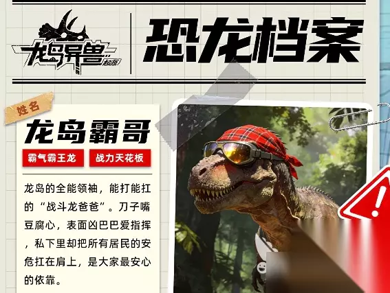 第三个恐龙是霸王龙,有不少玩家将其戏称为龙岛霸哥,作为龙岛上的全能领袖,不仅是战力值天花板,而且还具备一定的坦克属性,能够扛下不小的伤害。虽然在恐龙岛上他表面凶狠,但私下里却关注着每一位居民的安全,而且拥有这只霸王龙后,还可以对其他年轻的异兽进行训练,完成战力值天花板的提升,所以在游戏当中这个恐龙角色不可或缺。