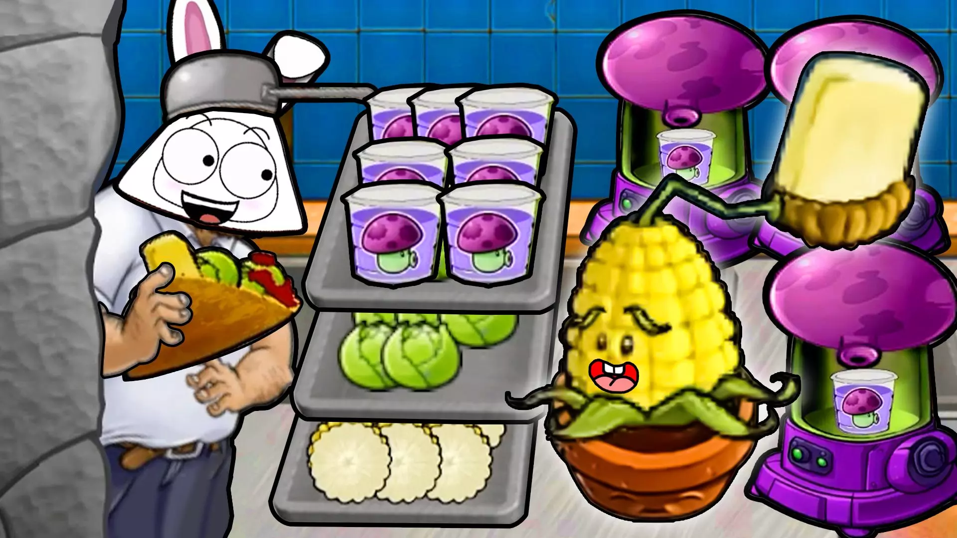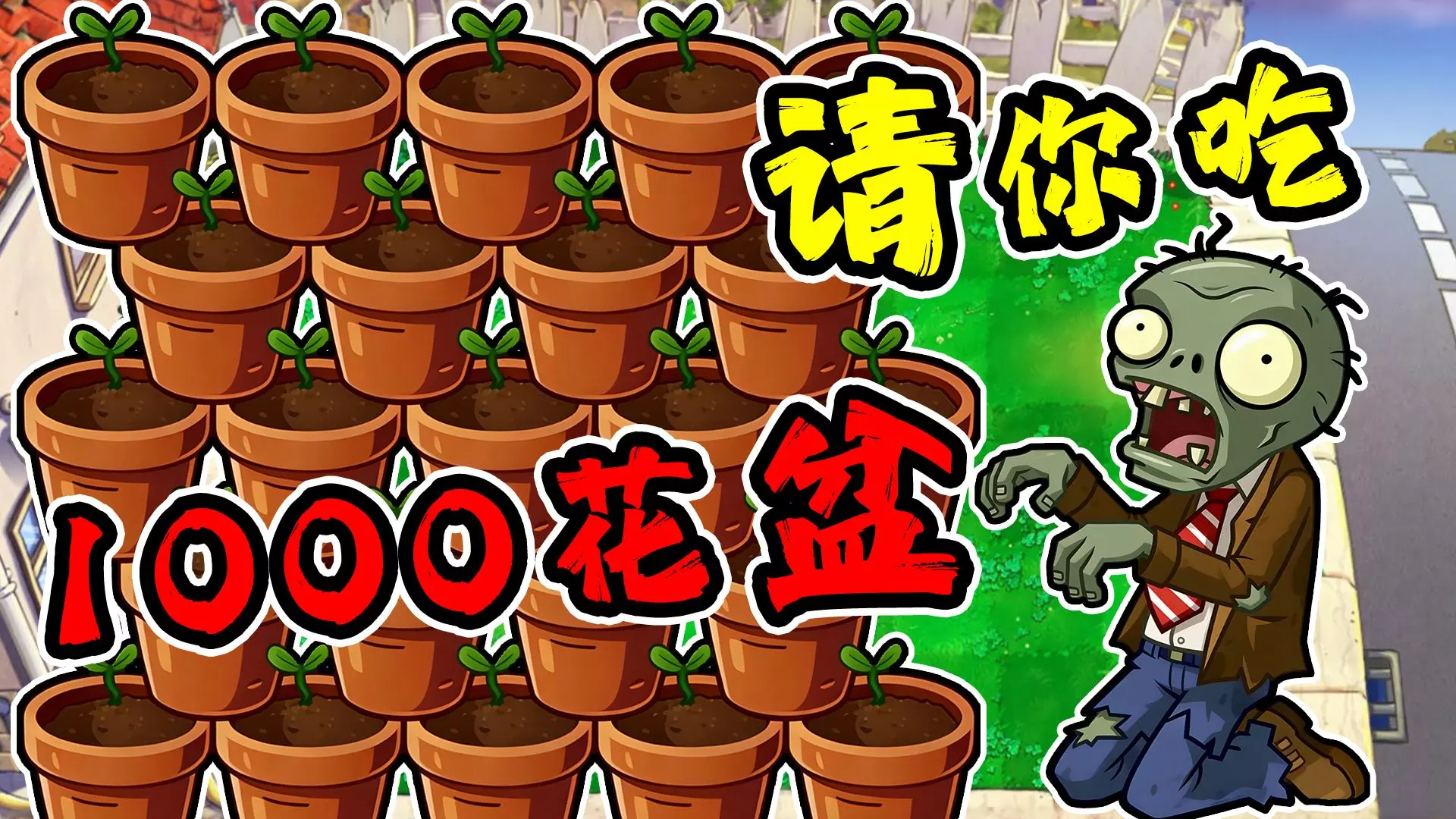 这是单机游戏《植物大战僵尸》的特殊玩法对局,开局就有10只铁桶僵尸,场面如同千军万马,对局中还有巨人僵尸、矿工僵尸等多种僵尸登场,搭配各类植物展开趣味攻防。